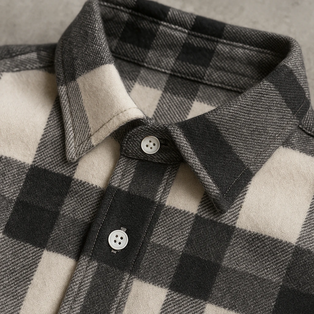 پیراهن های پشمی(فلانل) Bold and Basic از پارچه کشمیر براش خورده تمام پنبه ساخته شدن؛ با وزن سنگین 500 GSM که حس لوکس و استحکام واقعی میده.