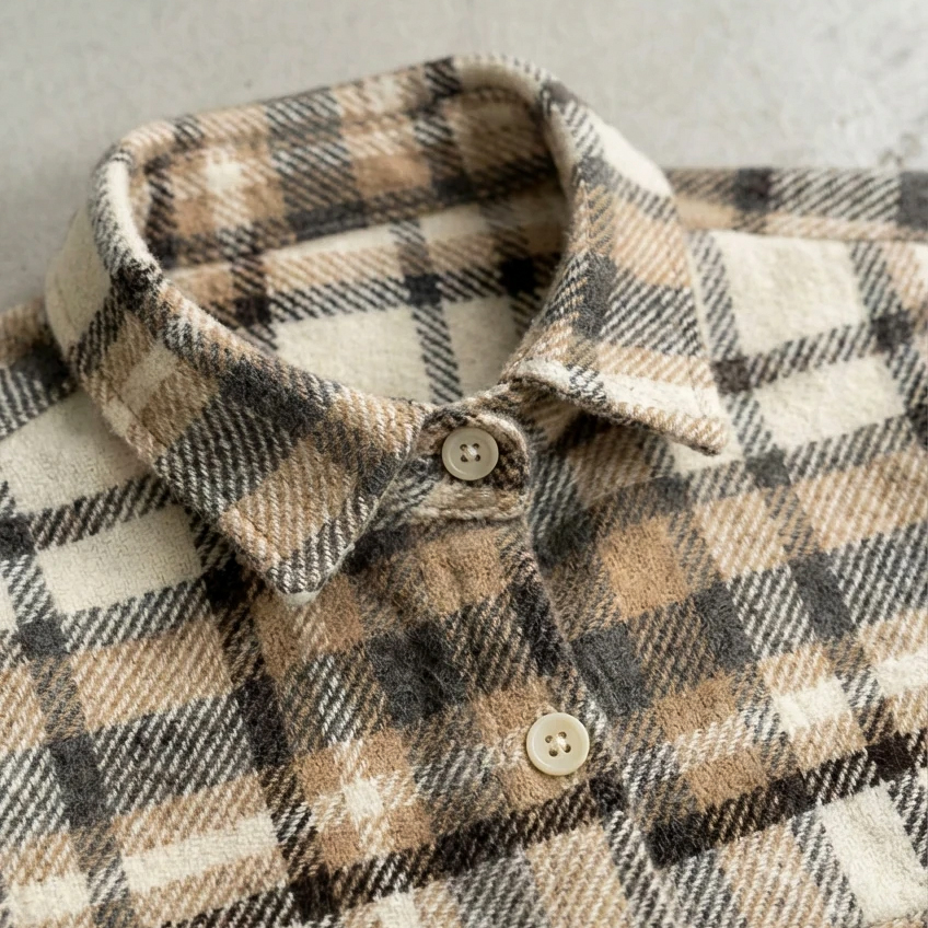 پیراهن های پشمی(فلانل) Bold and Basic از پارچه کشمیر براش خورده تمام پنبه ساخته شدن؛ با وزن سنگین 500 GSM که حس لوکس و استحکام واقعی میده.
