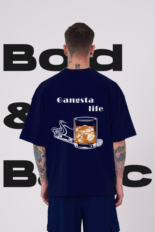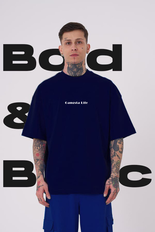 تیشرت آستین کوتاه مردانه مدل Gangsta سورمه ای
